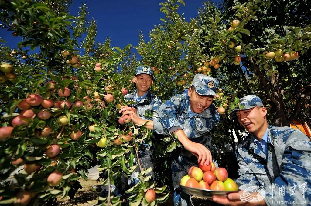 官兵们在休整点采摘自己种植的水果。