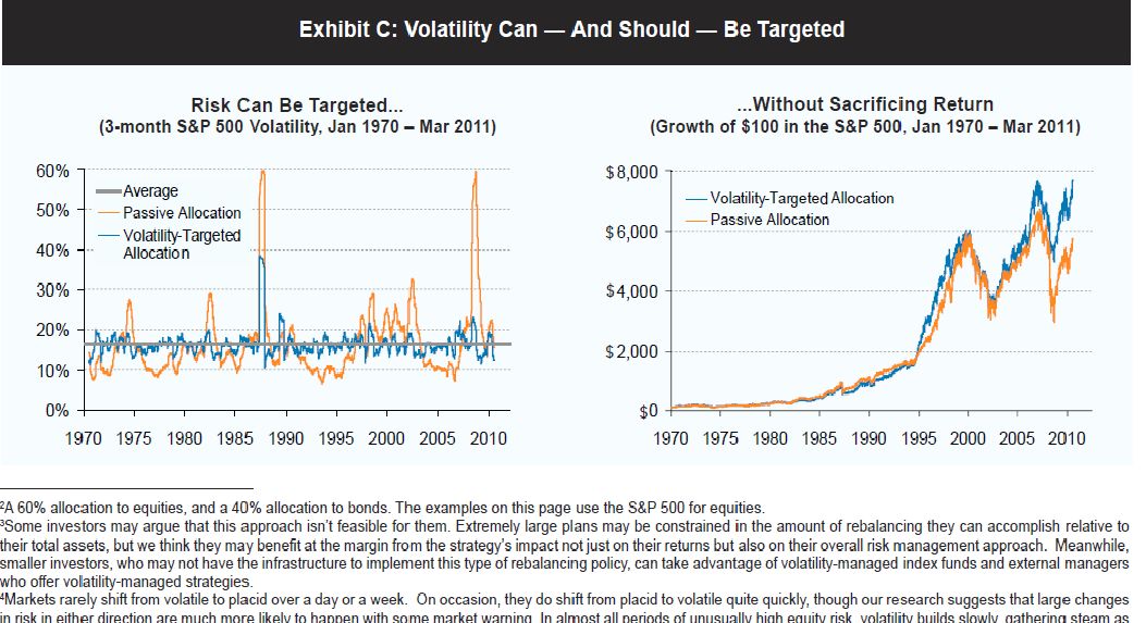 [3]一些投资者可能会认为这种方法对他们来说不可行。相对于其总资产而言,极大规模投资计划的再平衡数量可能会受到限制,但我们认为他们可能会在这一策略的影响下获得边际效益,不仅仅是收益,还有整体的风险管理方法。与此同时,规模较小的投资者可能没有条件实施再平衡政策,但他们可以利用进行波动率管理的指数基金和提供波动管理策略的外部投资经理来实施这一策略。