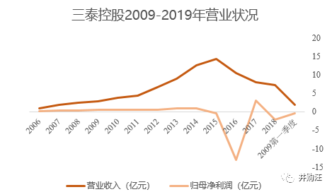 由于战略决策失误、并购失败,三泰控股在2015-2016年连续两年亏损,2016年甚至巨亏13亿,沦为*ST股。虽然随后通过出售资产获得一丝喘息,但2018年亏损噩梦的延续使得三泰控股始终面临“保壳”压力。