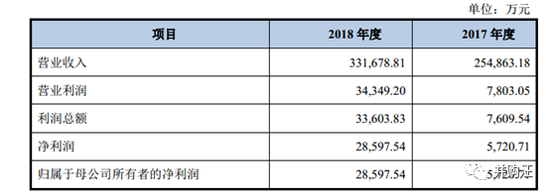 历史业绩:2017年度、2018年度分别实现营业收入254,863.18万元、331,679.81万元,实现归母净利润5720.71万元、28,597.54万元。