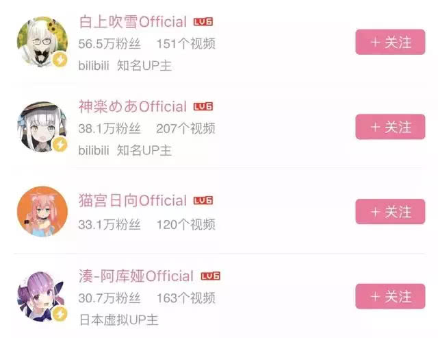 2018年年底至今,B站上已经有白上吹雪、神乐、凑-阿库娅、本间向日葵等海外知名虚拟主播,据不完全统计,目前B站日本的Vtuber达到了数百位。平台自身孵化出的虚拟主播“兰若_Re”和“Siva_小虾鱼”、虚拟唱见泠鸢等人气也在逐步增长。