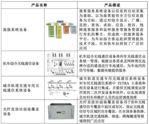 通信信息系统产品比较好理解,中国通号主要制造应用于铁路领域的通信设备。比如应用于铁路综合视频监控系统设备、旅服系统设备、机车综合无线通信设备、城市轨道交通专用无线通信系统设备及光纤直放站弱场覆盖设备等硬件。