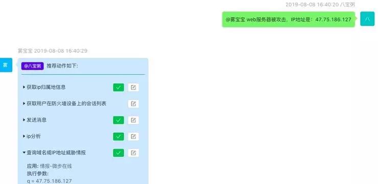 在雷锋网看来,HoneyGuide 的安全事件作战室其实更像一个QQ群,不过,安全运营分析人员在这个作战室里做出的反应动作全部被HoneyGuide 格式化后开始机器学习,等到下一次遇到类似情况时,HoneyGuide 这个学徒就开始不需要“老师傅”的帮助,在一个老师傅实在困倦的夜晚,自动应急响应,采取合适的方式处理问题。