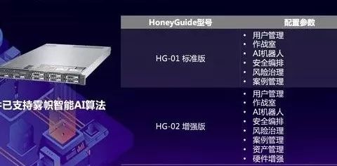 这款产品的主打特点是:以“自然语言交互”为核心的人机协同作战室+以智能编排和智能推荐为核心的安全剧本。人家说了,“ 未来,HoneyGuide 将在政府、金融、互联网、云平台、能源、传统企业等多个领域被广泛应用”。