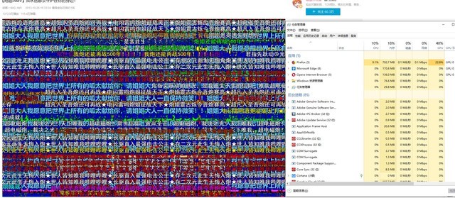 基准测试得分明确之后,再来看看内存、CPU、GPU占用情况。我们选择了B站经典视频《[炮姐/AMV]我永远都会守护在你的身边!》来进行测试,下图显示了该视频峰值弹幕量,而其总弹幕量已经超过百万。因此能够非常明显的影响到浏览器的内存占用情况。