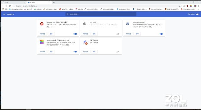 Chrome浏览器插件管理界面 不过插件管理界面与Chrome浏览器的布局不同,Edge Canary采用左右栏布局,Chrome采用上下布局,不过基本功能都一样。