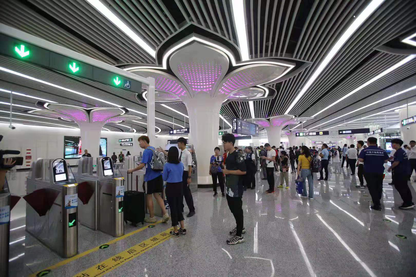 据悉,大兴机场线的三座车站均为换乘站,空间较大,在规划设计上,紧扣“一带一路”主题。此外,大兴机场站站台层的每个车门处均设置了电子信息提示屏,可查询车厢内拥挤度。