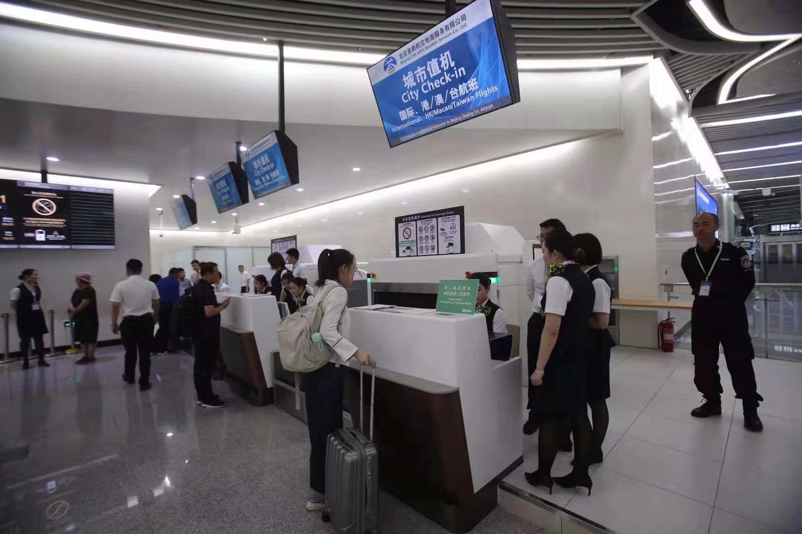 记者注意到,不少旅客在乘坐大兴机场线时手中都没有拿着大件行李,而是选择通过位于草桥站站厅层的城市航站楼直接办理值机和行李托运手续,“我用了不到2分钟就办完手续了,非常方便。”今天上午,市民白小姐将前往大兴机场乘坐中国联航的航班,她告诉记者,以前她去机场最头疼的就是拎着大包小包的东西赶路,而大兴机场线的托运服务给她省了不少事儿。