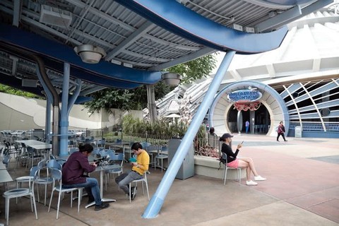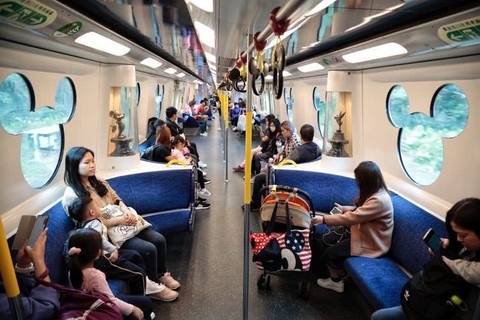 通往迪士尼的地铁车厢内依然有空座。