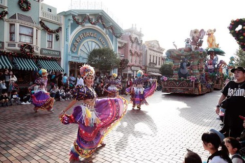 香港迪士尼巡游表演,场内各种娱乐设施和表演项目仍然正常提供服务。