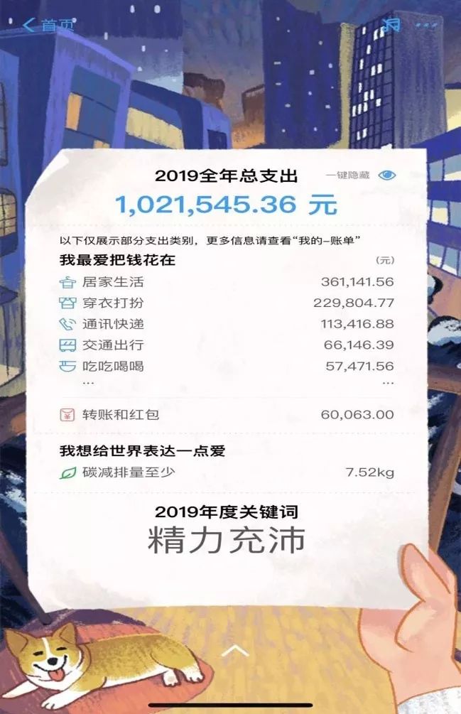 来看看网友晒出的支付宝年度账单,数字一个比一个吓人——