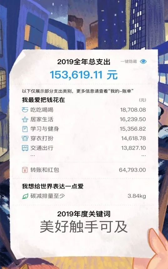 支付宝今日推出2019年度账单服务,用户可在支付宝中查看自己在过去一年的支出数据。