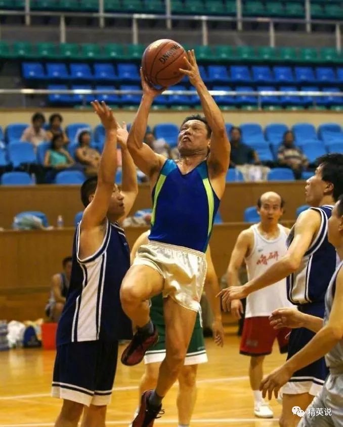还有前几年这张和年轻人打篮球的照片,