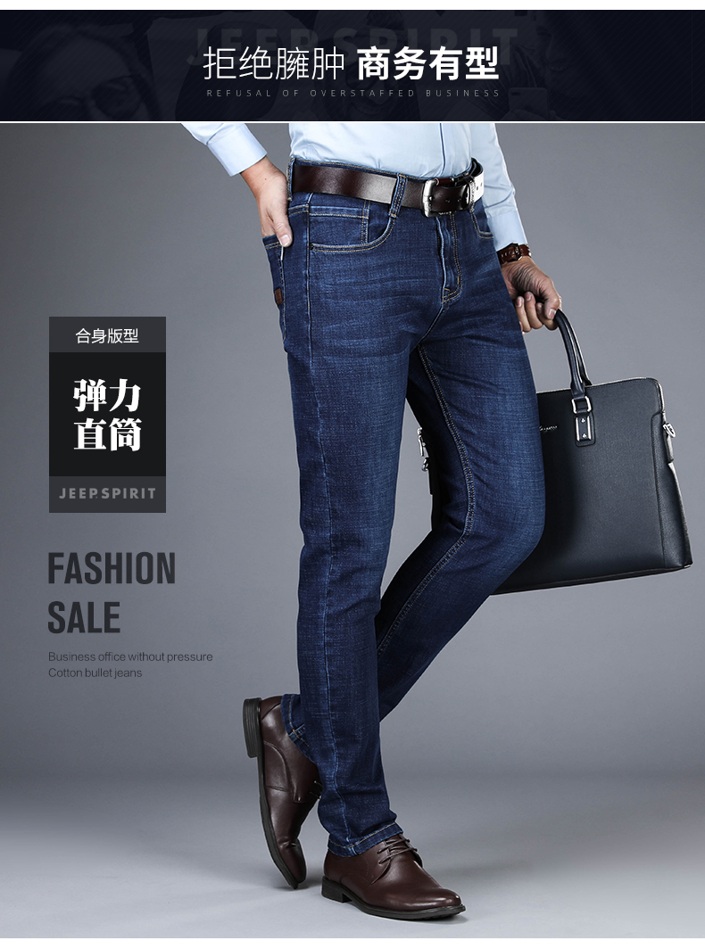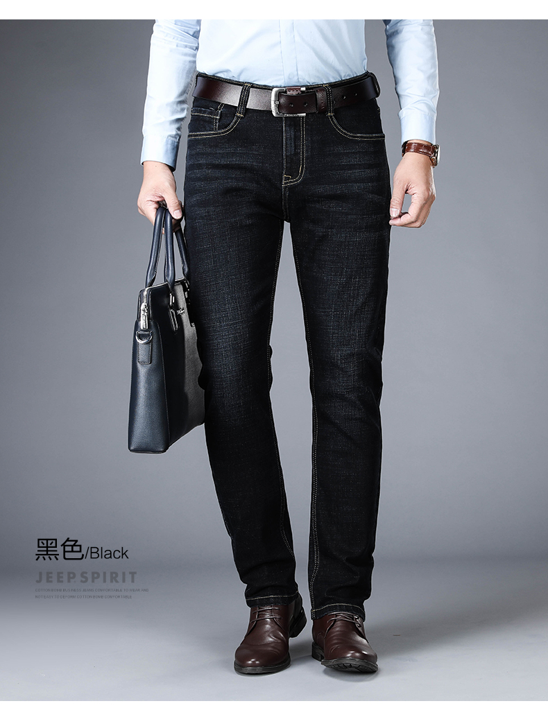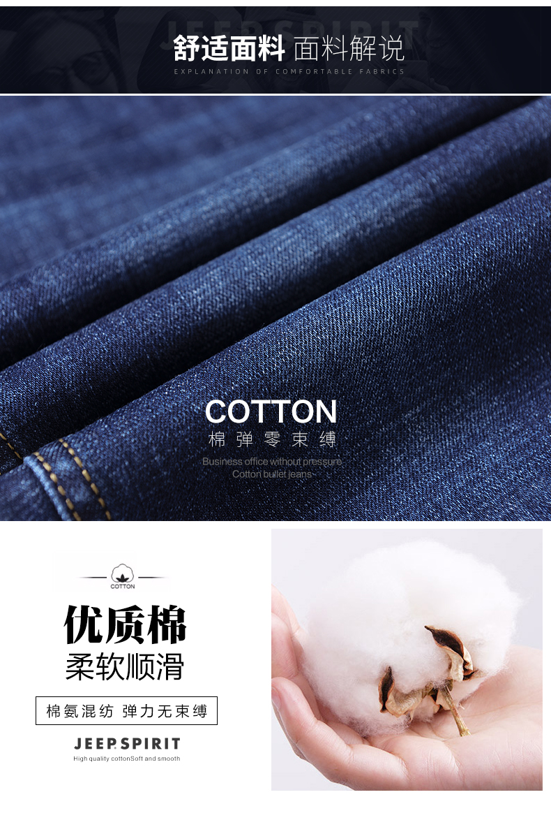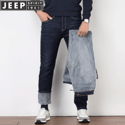 棉弹无束缚,吉普JEEP男士加厚直筒牛仔裤