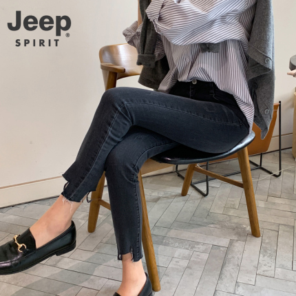 更暖更弹更显瘦,吉普JEEP女士高腰小脚九分牛仔裤