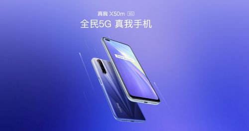 “5G全民手机”realme 真我X50m也同步亮相,具有“星空”蓝、“银河”白两款全新设计,支持 双模6频段5G网络 、搭载骁龙765G、120Hz畅速屏、30W Dart闪充和前后6摄影像系统。