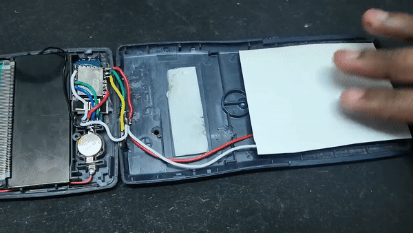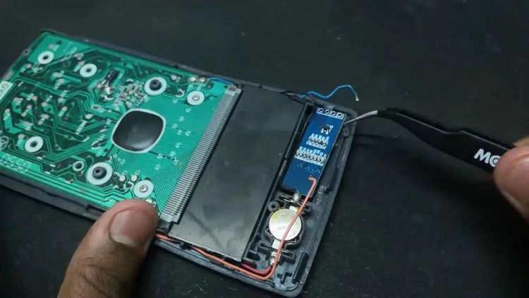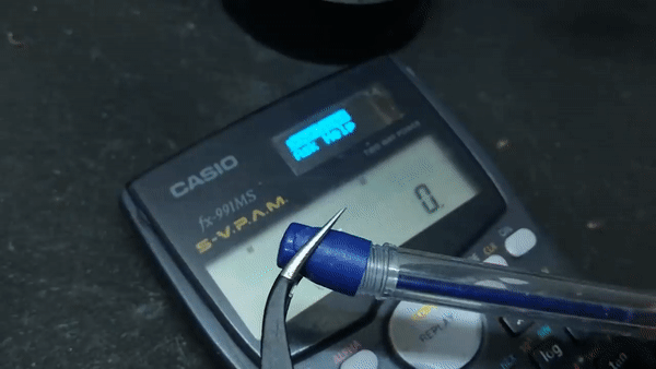 但是无线充电成本高,也会增加电路复杂性,因此印度小哥用了个土办法:在计算器后面加了两个金属触点,通过触点给电池充电。