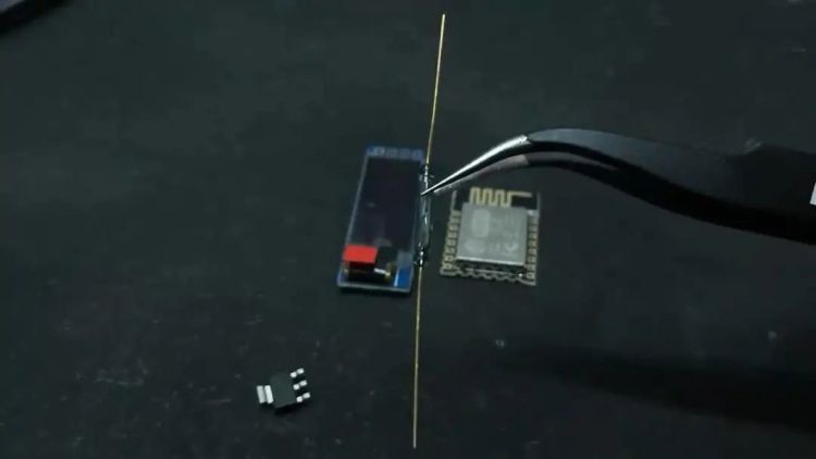 再把OLED面板和ESP8266开发板用导线焊接起来,进入调试阶段。