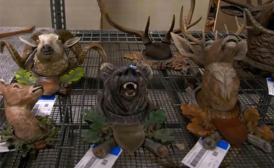 餐厅内还装饰着猎人们最爱的鹿角、动物雕刻,之前在推特上也曝光了一部分道具,看上去非常逼真,细节也很到位。