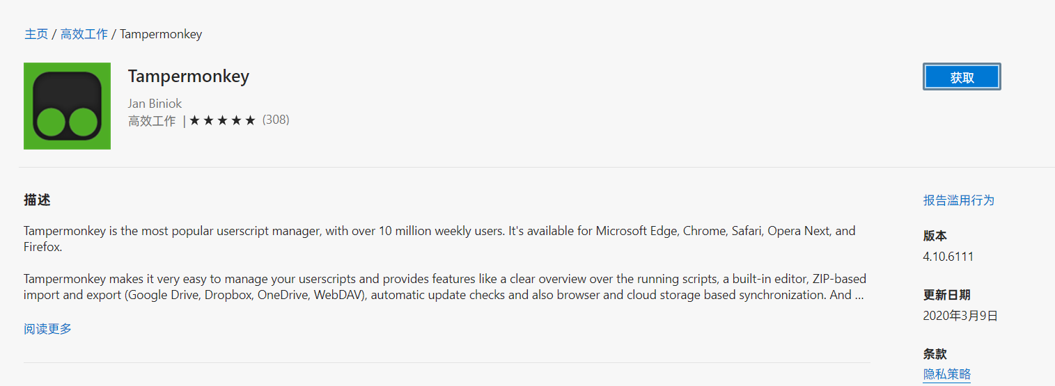 对我而言新版 Edge 一大好处在于你可以稳定快速的去插件商店下载 Edge 插件,还能不断更新最新版本,对于网络不方便(你懂的)的用户来说是很方便的。