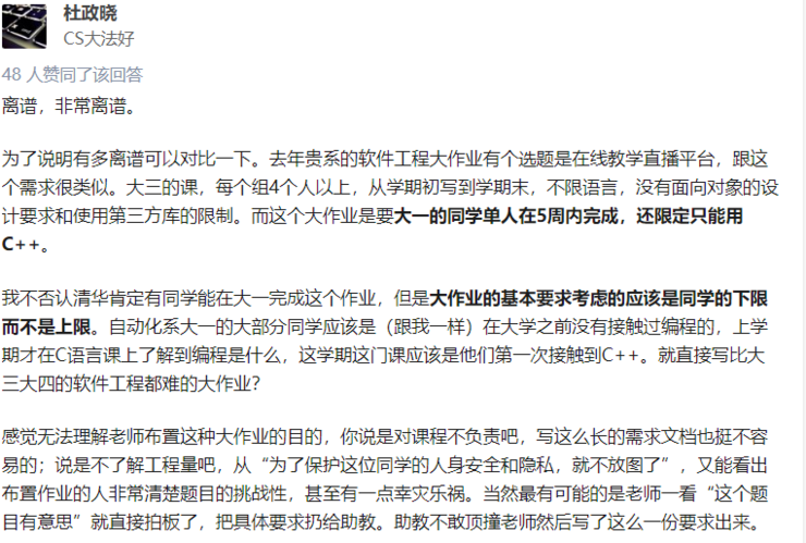 原标题:清华大学自动化系 2020 C++ 大作业引热议,网友:建议直接入职 BAT!