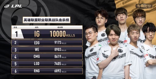 从战队层面看,iG的总击杀人数远远高于第二名的EDG,看来iG战队在LPL战队击杀榜单上会长时间稳居第一名。