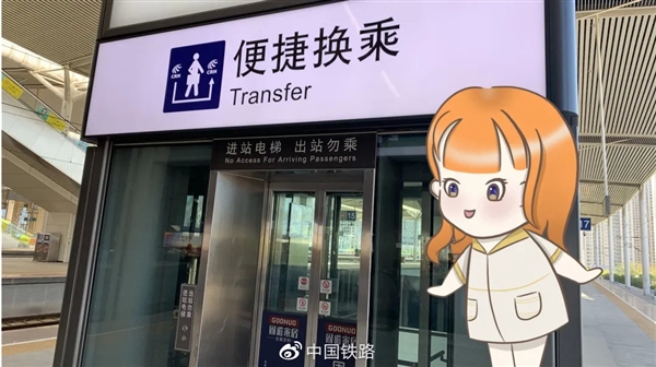 此外,如果你需要换乘其他列车,可沿着白色“便捷换乘”标识,通过一部电梯直达候车室。