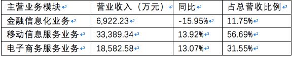 半年报显示,银之杰是以金融科技服务为核心业务的国家高新技术企业。报告期内,公司的主营业务涉及金融信息化、移动信息服务、电子商务三大领域。其中,公开资料显示,金融信息化业务是银之杰的起家产品。