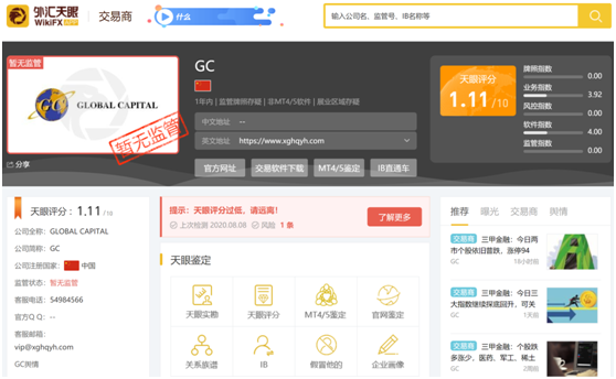 记者同时发现,Wiki Co.,LIMITED旗下的一款企业信息查询工具外汇天眼中显示该公司监管牌照存疑,10分满分的天眼评分仅获得1.1分,供投资者参考。
