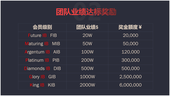 随后讲师又介绍了公司的外汇经纪人制度,只需入金3000美元,进行托管即自动成为公司FIB级别会员,之后可通过不断发展下线获取收益。随着级别的不断晋升,奖励效应会依次调高,若达到1.4亿元业绩,理财收益加佣金累计可赚得600万元。