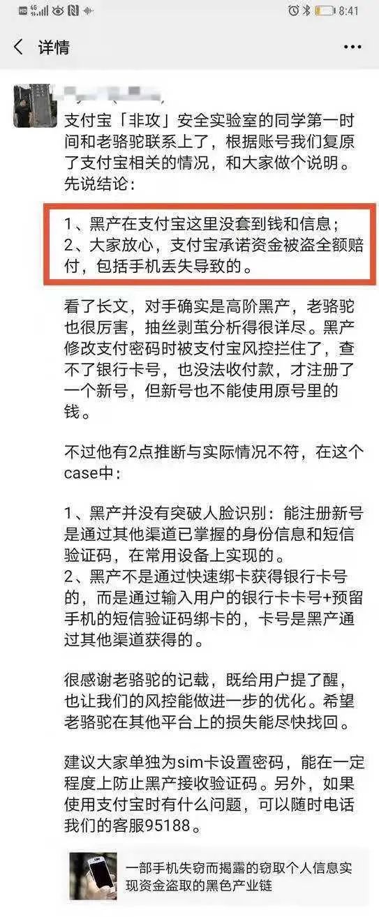其实早在当时,支付宝相关部门人士已经回应称,黑产没有在支付宝里套到任何钱和信息,也并未突破人脸验证。