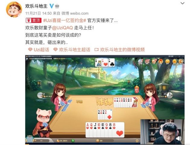 11 月 22 日消息,腾讯欢乐斗地主与 Uzi(简自豪)9 位数 “签约金”终于实锤,昨日下午,腾讯欢乐斗地主官方微博发文称,Uzi 一亿签约金,实际为 1 亿斗地主欢乐豆。