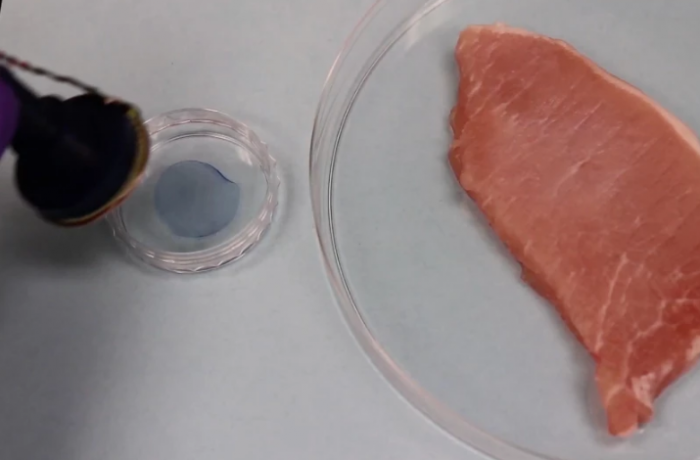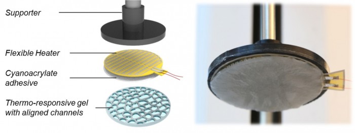 为了抓取生物组织片,科学家首先使用加热器加热凝胶,使其收缩。然后将凝胶轻轻压在纸上,然后关闭加热器。这将使凝胶膨胀到原来的状态,轻轻地对片材产生吸力。随后将组织片从培养物中取出并转移到伤口部位后,再次加热凝胶。这将再次使其收缩,从而释放组织片。整个过程仅需10秒左右,计划要求进一步改进该设备。