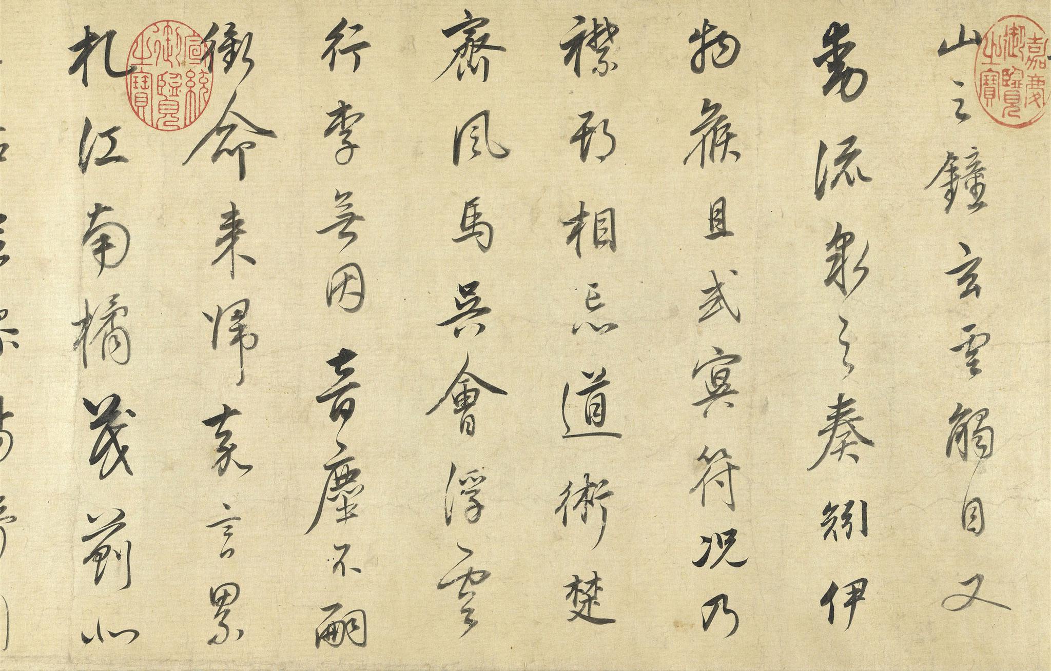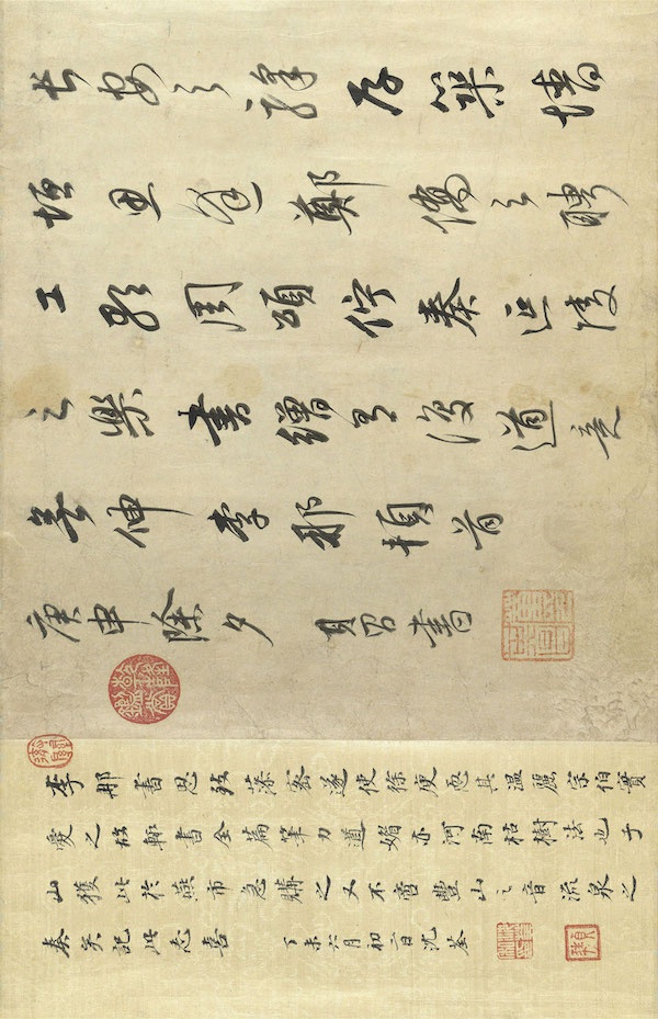 元代继起,转而提倡复古,晋唐书法传统得以延续。然而,不受传统束缚的意念也活跃起来,至明代浮现纵横跳脱的气息。明人书法面貌至为纷杂,行草书尤其活泼自由,适与当时依循传统法度者形成对比。其间突显个性自成一格的书家,也走出实现自己的路径,不为时代潮流所吞没。