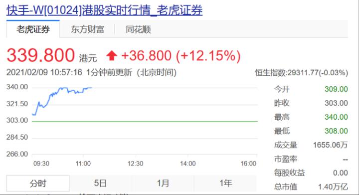 或受此利好消息影响,快手早盘急升12.15%,较发行价115港元上涨了194%。此外,瑞银发布报告表示,快手平台处于营收初期,预计明年可以录得盈利及料2020年至2023年收入复合年增长率41%,该行给予目标价430港元,买入评级。给予了快手这个“新手”充分的肯定。