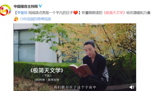 3月8日,中国播音主持网曝光了董卿最新的近况,在视频中能看到董卿在朗读国外著作,作为节目《朗读者》的发起人和制片,董卿热爱读书并且身体力行把这个爱好分享给大家,也让很多粉丝开始自发学习读书。