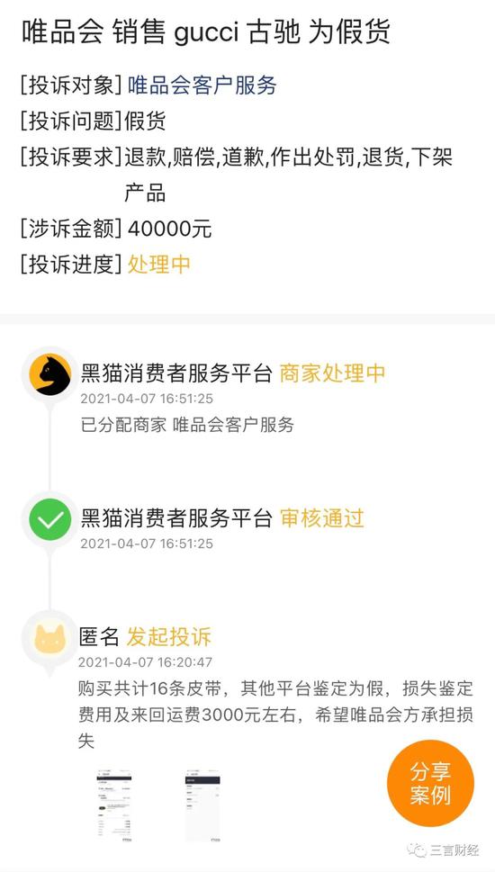 此外,三言财经注意到,不仅是腰带,还有很多消费者投诉唯品会上的商品存在假货问题,包含帆布鞋、眼镜等商品。
