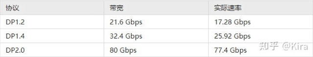 目前常见的DP 版本有DP1.2、DP1.4、DP2.0,所支持的宽带不同。