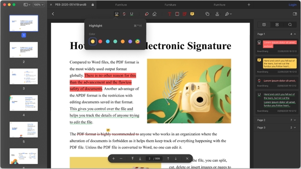 此次的万兴PDF Mac端8.0版本针对MAC系统的使用特点,在原版本界面设计上做到三重突破,尤其是在页面展示扩容上进行更新,将为用户带来更高效、舒适、清晰的浏览体验。