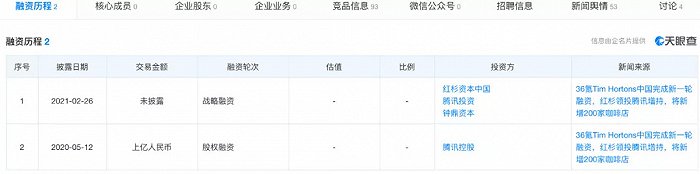 今年2月,新消费Daily曾追踪过Tims进入中国后获得的第二轮融资,由红杉资本中国基金领投、腾讯增持、钟鼎资本跟投。