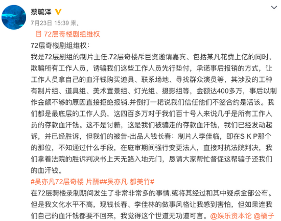 8月3日,有网友爆料了吴亦凡的家庭,称