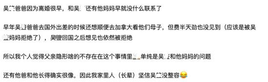 家里人和吴亦凡爸爸是同事,所以知道一些小料,想让大家多了解一下吴亦凡妈妈,引起不少网友的好奇。