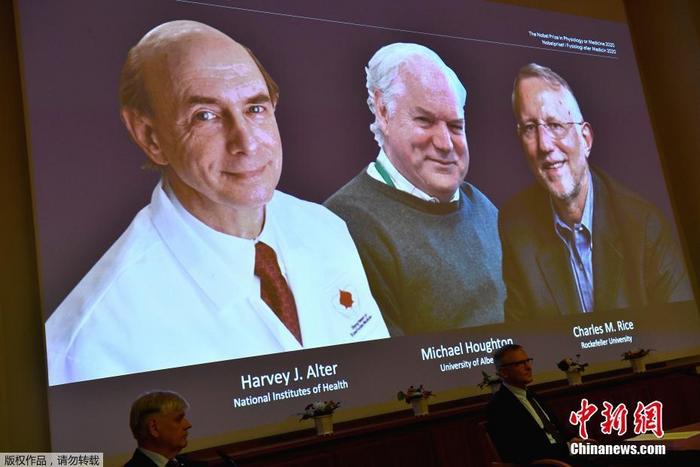 美国科学家哈维·阿尔特、查尔斯·赖斯以及英国科学家迈克尔·霍顿,因在发现丙型肝炎病毒方面所做出的贡献获奖。