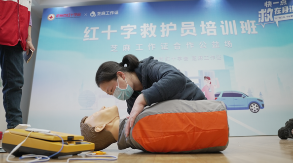 当日,红十字救护员培训班(芝麻工作证合作公益场)线下开班,不少学习过线上课程的学员来到现场,接受实操培训和考核,并拿到了“电子救护员证”。