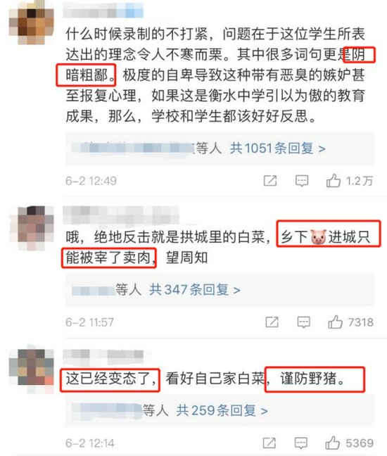 一个衡水中学的学生,因演讲时一句“我是一个乡下土猪,立志要拱大城市的白菜”引起热议,有人说他心术不正,有人说他戾气太重。