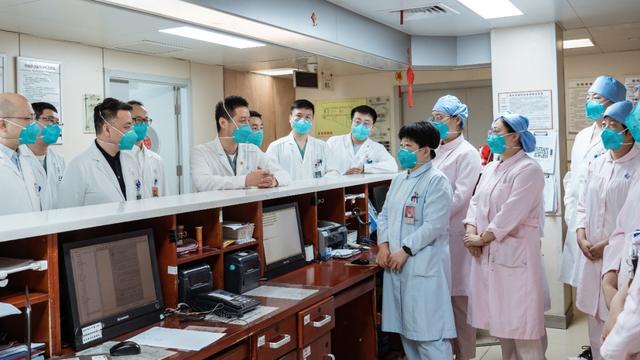 在应急准备时间短,医疗保障任务重的情况下,为确保病区安全平稳,医护团队全部下沉到一线岗位,每天准时到床前仔细查看患者的病情,及时调整救治方案,鼓励、安慰患者。