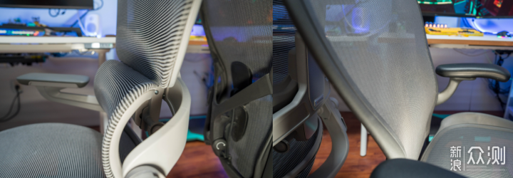 腰部支撑方面,Aeron的腰部支撑我个人认为是不够的,至少可调节幅度太小了,他的椅背一体设计,注定腰部幅度不会大,当然作为老牌工学椅,腰部支撑还是有的,而摩伽S9的腰部调节幅度应该是我目前使用过工学椅中最大的,腰部可以调节到有明显凸出的感觉。