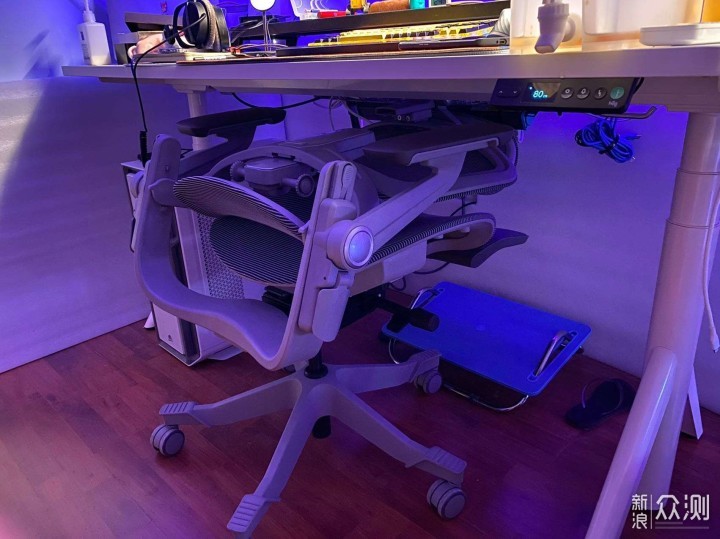 站立办公是他另一个功能,双脚踩上站立起来,可以当做平衡板使用,实际使用没有看起来那么刺激,慌动身体基本不会倒,集中精力工作也不至于摔着。