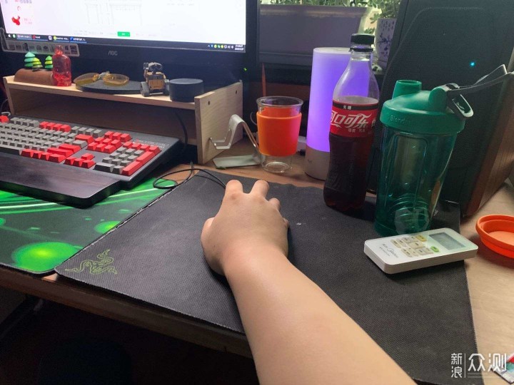 第二个是桌面边缘不要有遮挡物,抽屉什么的一概不要,就像这样简洁最好,显示器支架都能随便夹,我也不喜欢纯纯的黑色电竞风格,桌面异形设计其实也没多少必要。