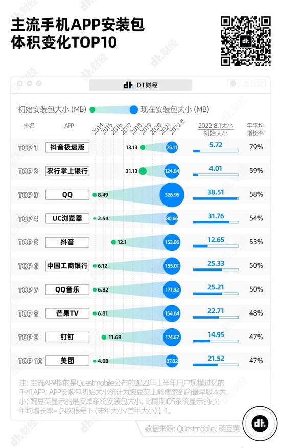 8年间QQ安装包增长37倍,抖音极速版每年增长79%